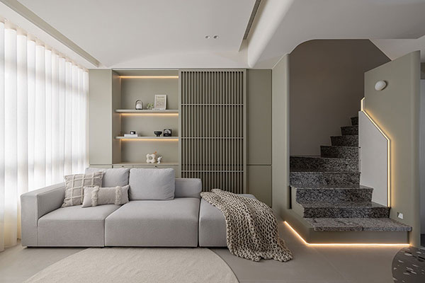 This townhouse, designed as the architect’s own residence, reflects more than a decade of honed aesthetic practice, a personal affinity for American style, and bold black-and-white contrasts. These elements form the foundation of the design, enriched by the strength of ironwork, the warmth of wood slat textures, and the organic beauty of marble. Together, they create an atmosphere that evenly coordinates strength with softness, coolness with warmth, offering a sense of harmony and comfort. Flowing arcs weave through the entire home, shaping a graceful visual rhythm while ensuring safety for both the elderly and young children. The result is a living environment that harmonizes rational structure with emotional nuance, embodying a balanced and timeless residential aesthetic.